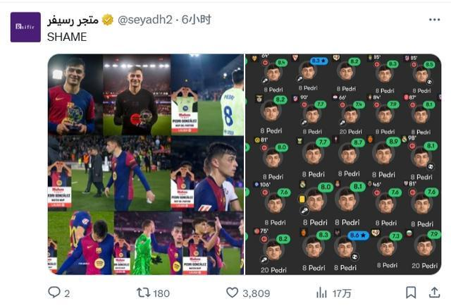 数据与观感的巨大落差成为争议焦点。当切尔西的帕尔默(第10名)排名高于佩德里的结果公布后,社交媒体瞬间爆发。金球奖官方推文下,西班牙记者Miquel Blázquez直斥“耻辱”,这条评论获得极高共鸣[^直播吧原文]。球迷纷纷晒出佩德里的比赛评分合集与关键数据对比图,质问评委:“他们竟然将帕尔默排在佩德里之前,真是耻辱!!”更有激烈言论称:“法国足球应该跪下来道歉”、“对世界足球来说是一种犯罪”[^直播吧原文]。
